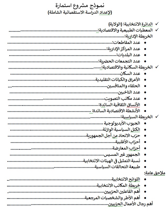 الشروع في إعداد دراسة استقصائية شاملة للساحة السياسية الوطنية؛