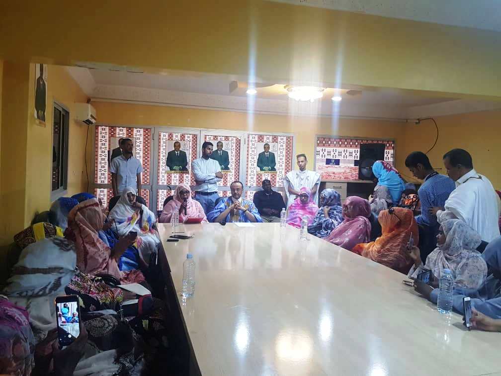 المرشح سيدي محمد ولد بوبكر شكر المجموعة النسوية "الامل من اجل التغيير" على دعمها لبرنامجه الانتخابي الذي سيحل المشاكل الرئيسية التي يعاني البلد خاصة ما يتعلق بالصحة والتعليم وأبرز من تضرر من تدهور هذيْن القطاعيْن يضيف المرشح هو المرأة لأنها تعيش الفقر والتهميش بحكم مسؤولياتها الأسرية.