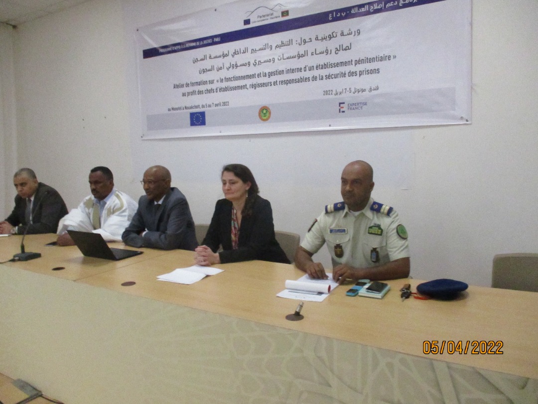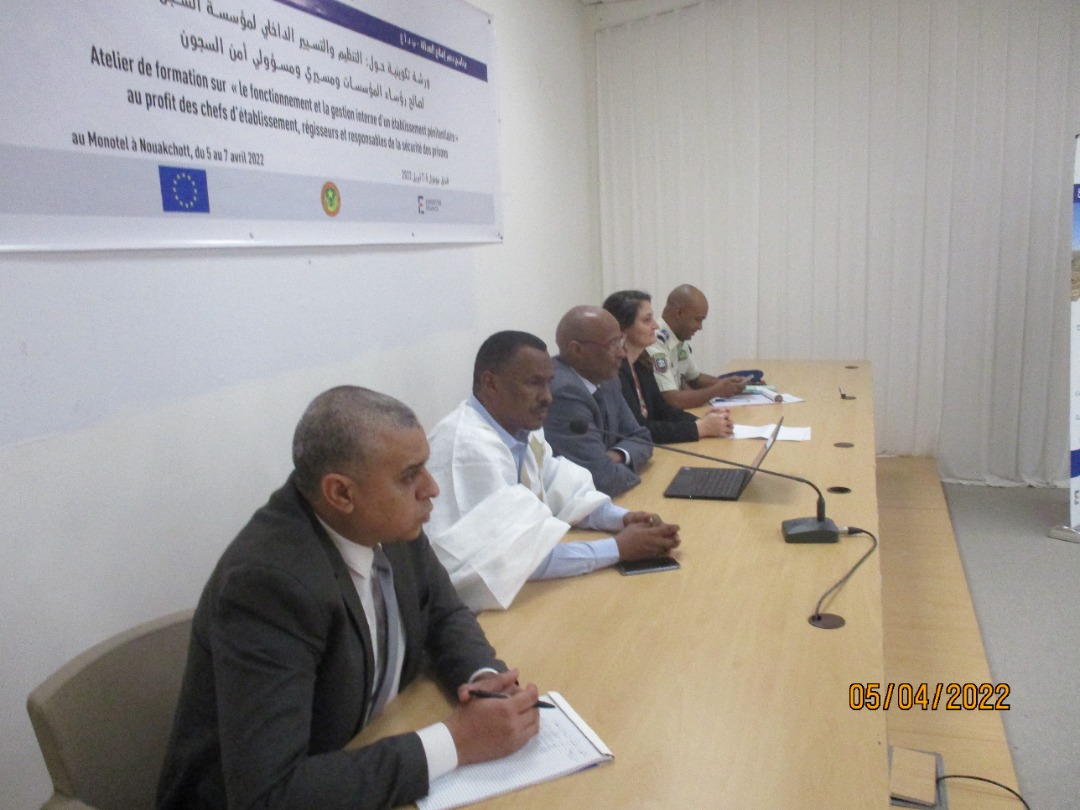 بدأت وزارة العدل اليوم الثلاثاء 05-04-2022 بانواكشوط فعاليات تكوين لصالح رؤساء المؤسسات ومسيري ومسؤولي أمن السجون؛ حول: التنظيم والتنسيق الداخلي لمؤسسة السجن.